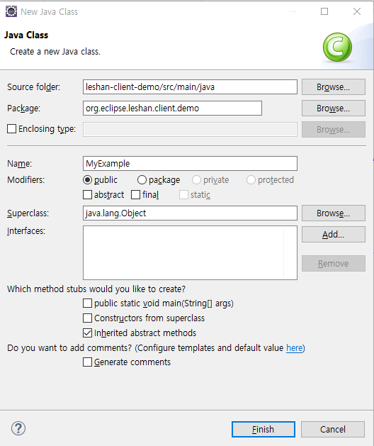 MyExample.java라는 class를 새로 생성하였다.